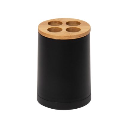 Maison Sucasa Toothbrush Holder for Bathroom, Countertop, Bathroom Accessory, Plastic and Rayon from Bamboo, Black